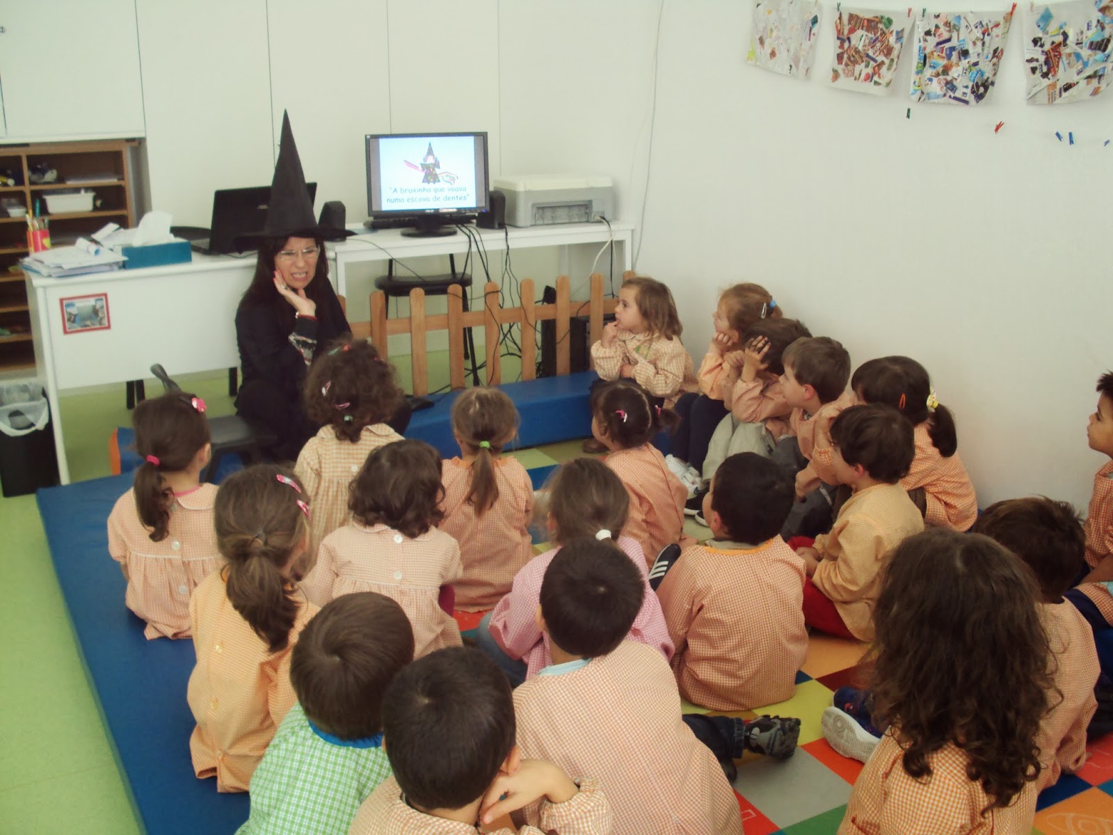 Hoje recebemos uma visita super especial...uma bruxa que voava numa escova de dentes. Amanhã é o dia do bolinho e nós vamos pedir o bolinho pela localidade. Normalmente ganhamos muitas guloseimas e a nossa saquinha costuma ficar cheia de rebuçados, chupas, gomas, chocolates e bolos. Esta bruxinha veio lembrar-nos que é muito importante ter uma alimentação saudável e só comer doces um de cada vez e...depois dos doces temos de lavar muito bem os nossos dentes.