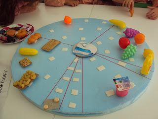 Hoje concretizamos uma atividade dinamizada pela equipa do PES do agrupamento, relacionada com a alimentação saudável. Esta atividade já tinha sido calendarizada para outra altura mas só hoje foi possível concretizá-la. Depois de escutar-mos a história "A sopa" conversámos sobre a roda dos alimentos e sobre a importância de termos uma alimentação saudável. Depois fizemos um jogo relacionado com esta temática. Alguns meninos (sobretudo os mais novos) tiveram dificuldade em escolher entre um alimento saudável e um alimento que gostavam muito mas...estamos sempre a aprender!