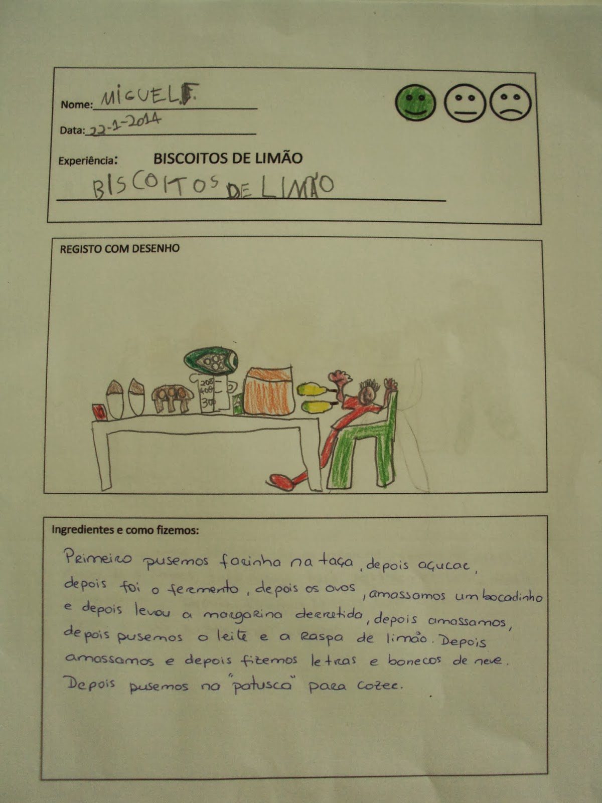 A receita dos biscoitos de limão que o Miguel F. nos trouxe foi um pouco alterada pois gostamos de "inventar". Fizemos a receita a dobrar (com o dobro das coisas) e substituímos metade da manteiga por leite e...resultou bem. Ingredientes que utilizamos: