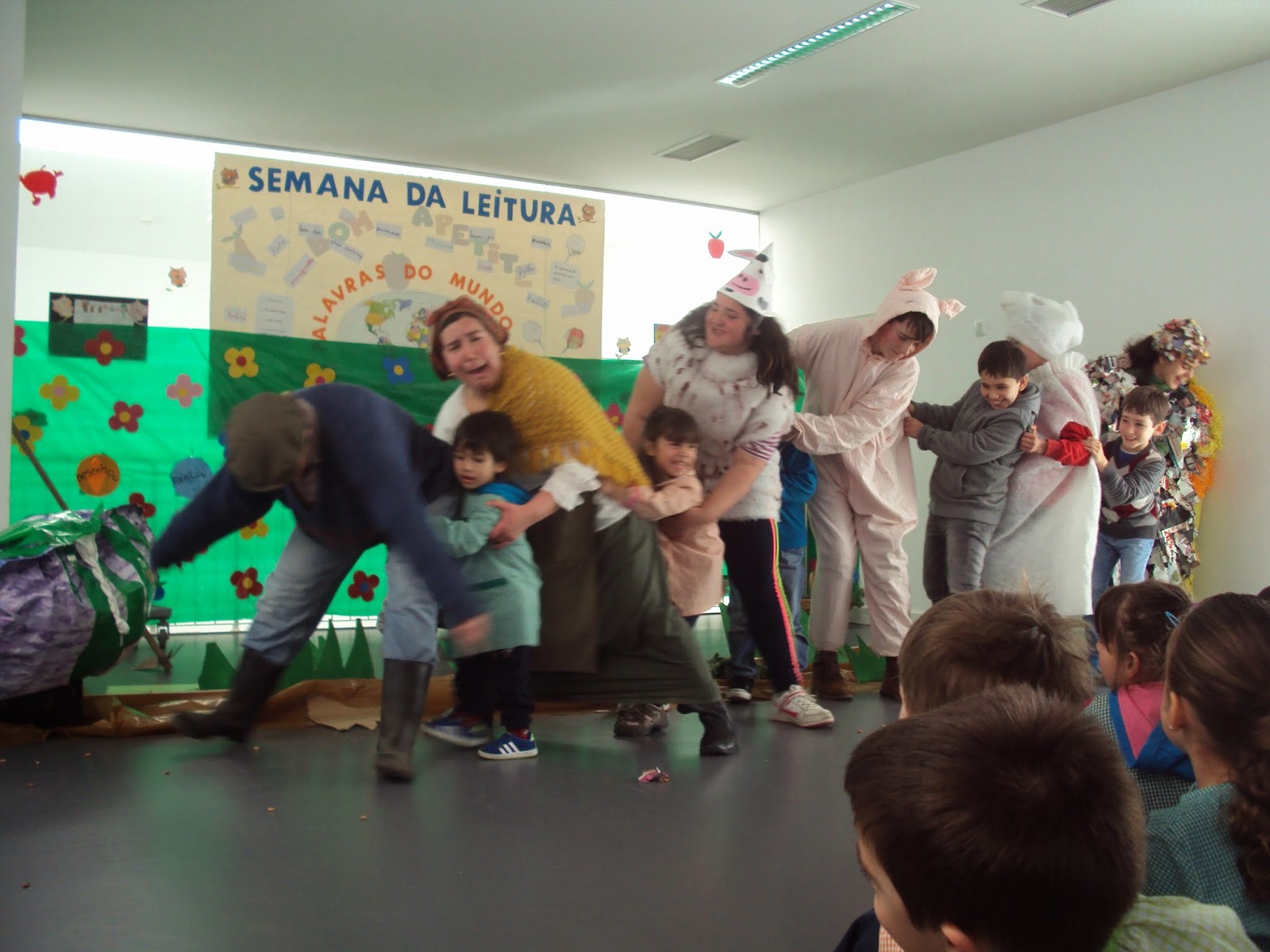 Hoje foi dia de assistirmos à representação da história "O nabo gigante". Quem dramatizou para nós esta história foram um grupo de alunos do projeto "Inclusão" e duas das suas professoras. Foram momentos muito divertidos que nos fizeram rir.