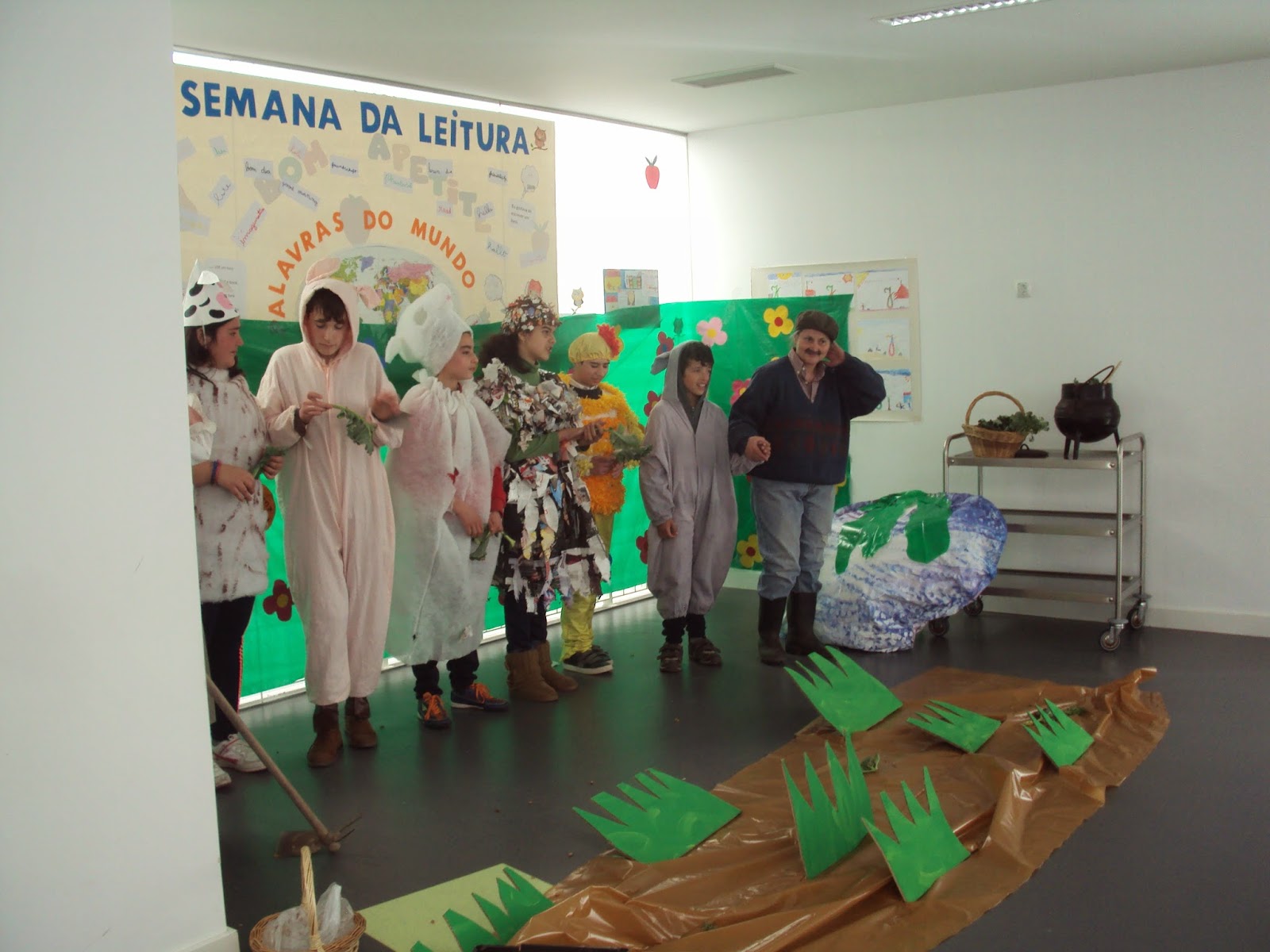 Esta foi a história escolhida pela professora Natércia (da nossa biblioteca) para ensaiar com um grupo de alunos do CEM e que hoje nos foi apresentada. O Miguel representou o nosso grupo muito bem e todos os atores ,assim com a encenadora estão de parabéns. Foi mais uma atividade no âmbito da semana da leitura que nos divertiu e nos fez gostar cada vez mais dos livros e da leitura.