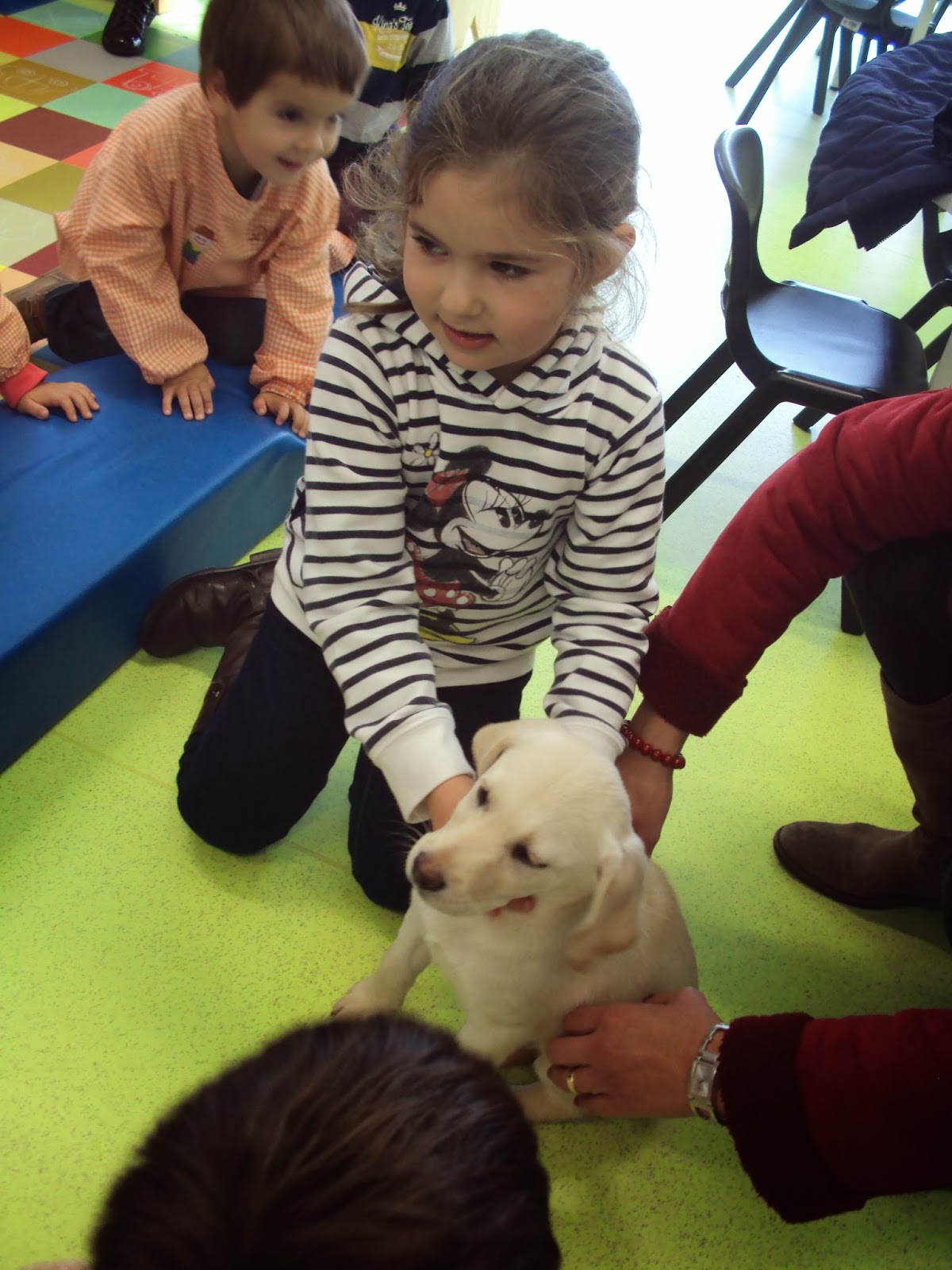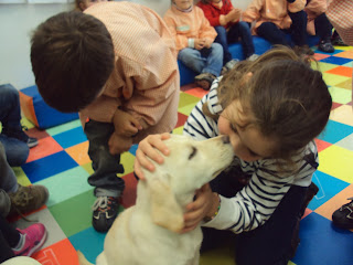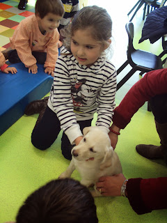 Nestes últimos dias temos ouvido falar muito dela. Já sabíamos como ela era, de que cor tinha o pêlo, como é que ela gosta de brincar, mas hoje pudemos ver-lhe e mexer-lhe. Esteve connosco apenas uns minutos mas estava tão radiante como nós. A "Chiara" é a cadelinha bébé da Salomé e hoje veio à nossa sala!