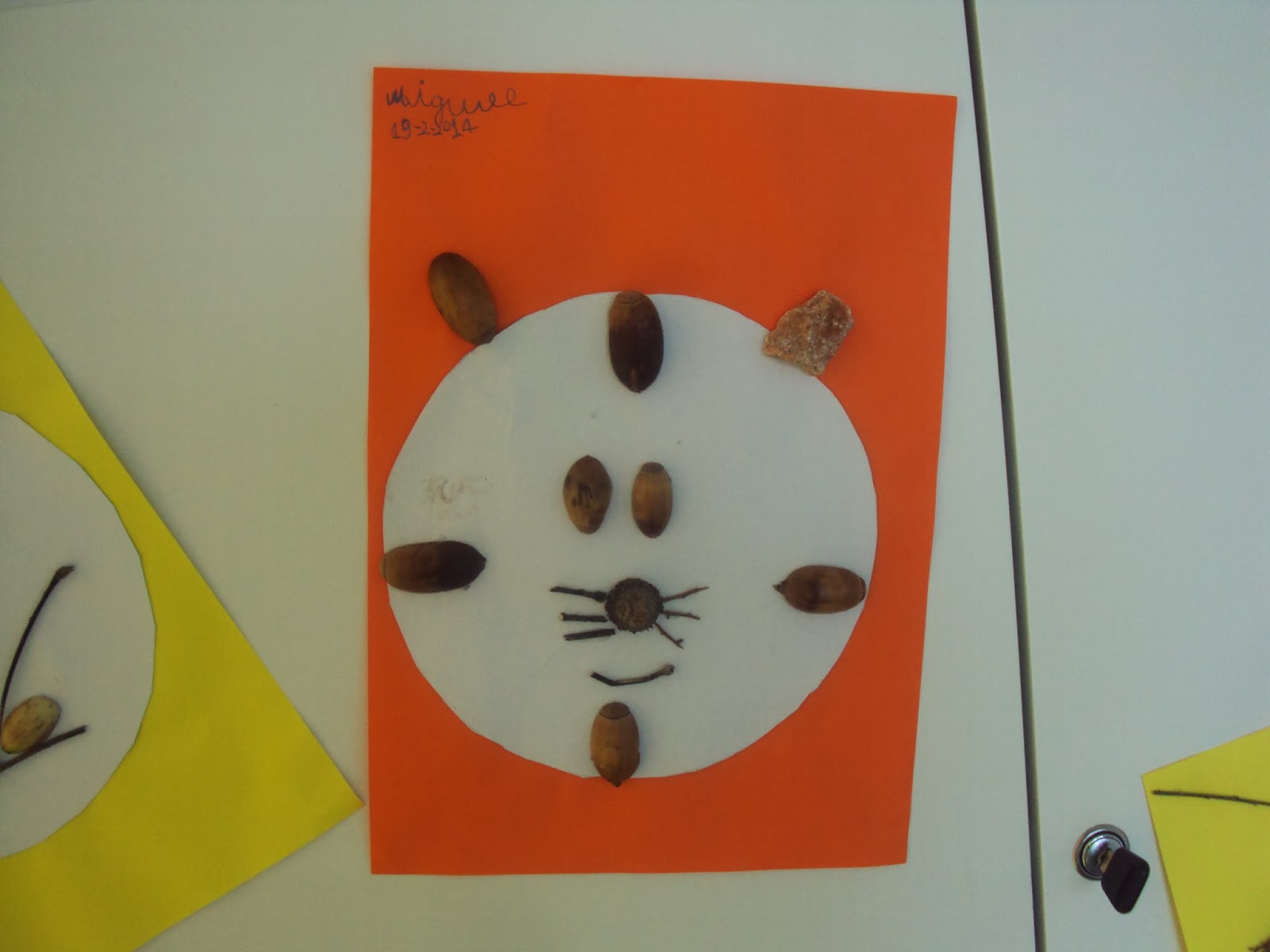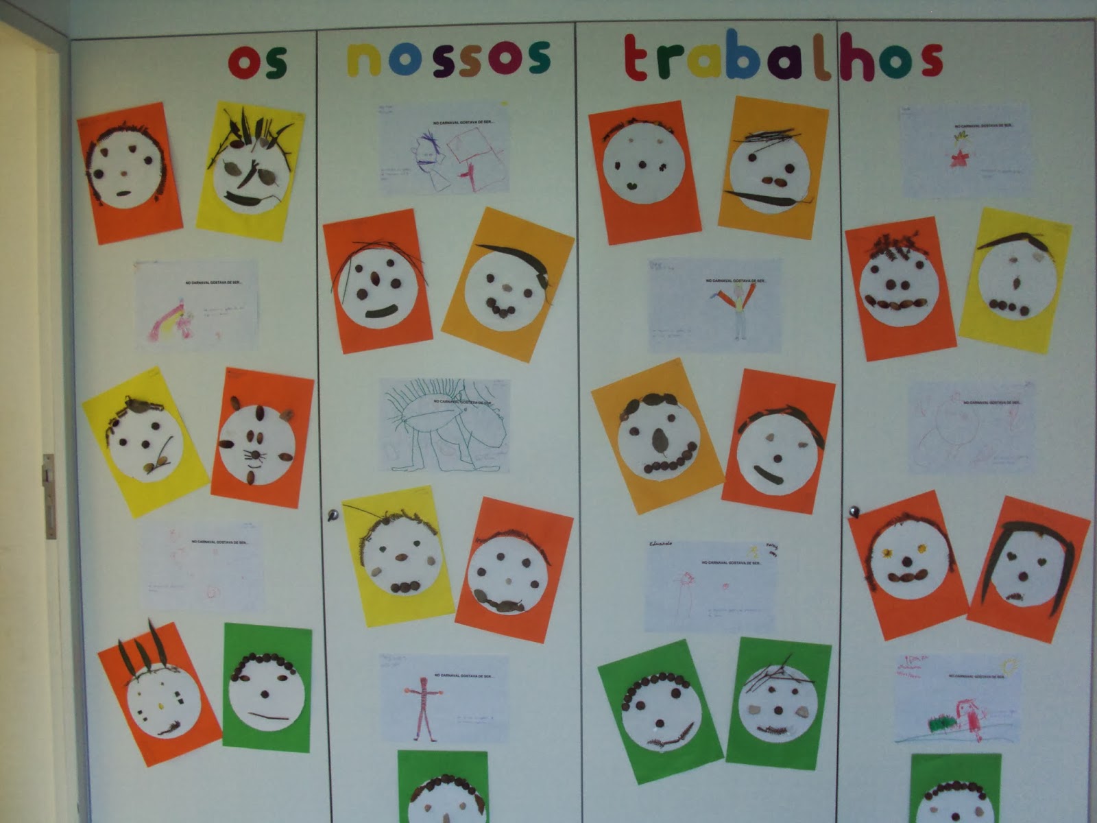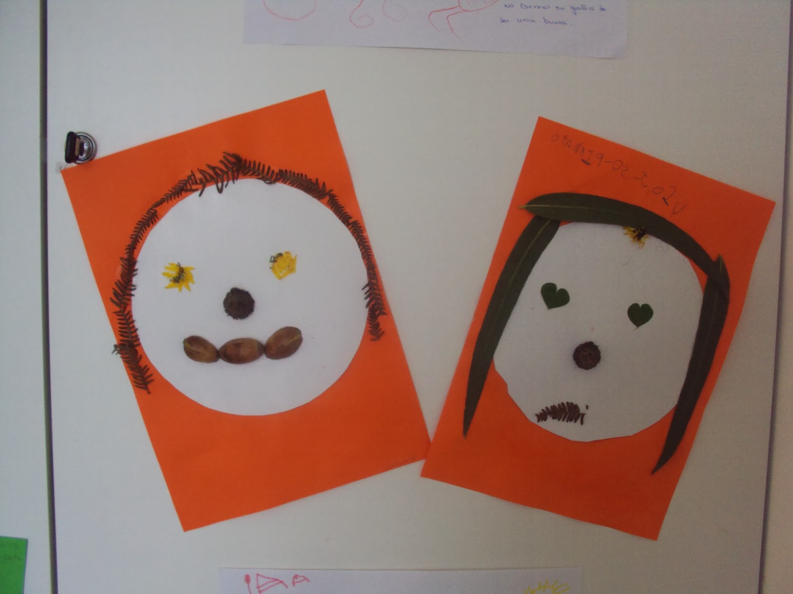 Ontem recolhemos os materiais e no período da tarde alguns meninos e meninas puseram mãos à obra. Hoje terminamos esta atividade de expressão plástica. Antes de usarmos os paus, pedras, flores, bolotas, folhas, etc ainda brincámos com a matemática. Fizemos conjuntos dos elementos semelhantes, sequências, etc
