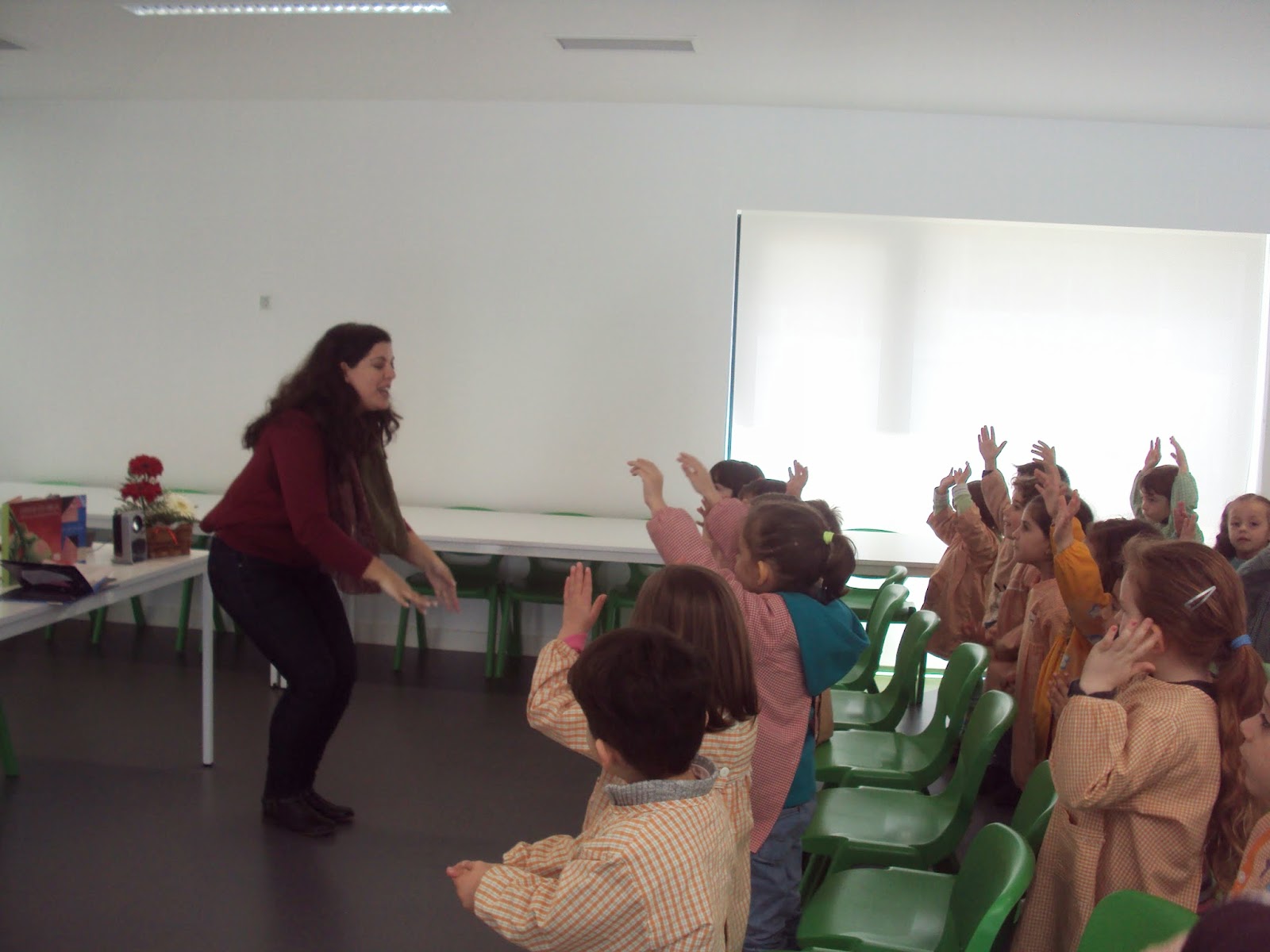 As novidades continuaram a um ritmo tão rápido que nem registámos mais...depois foi sugerido que alterássemos o lugar nas almofadas conforme estava combinado antes de ir-mos de férias. O Filipe, que hoje foi o responsável, foi o primeiro a escolher e depois seguiram-se os outros meninos, dos mais velhos para os mais novos. De seguida cantámos os parabéns às nossas Lauras que fizeram anos durante as férias. O bolo foi o mesmo mas o mais importante foi cantarmos-lhe os parabéns e apagarem as velas. Continuámos a "ser heróis da fruta" como não podia deixar de ser. Ainda combinámos fazer as coroas dos Reis que estão a ficar mesmo "reais".