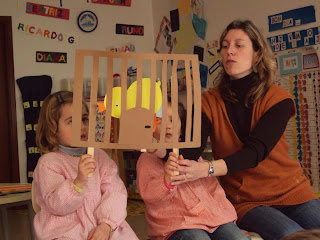 "A magia dos sons e das cores" foi financiado e já podemos adquirir material mais específico para desenvolver as nossas experiências. Entretanto não temos ficado parados e esta semana a nossa experiência foi construir umas bolinhas especiais, com diferentes sons, com as quais nos divertimos e fizémos jogos de sons. Precisámos de bolas de ping- pong, arroz, massinhas, feijão preto, pedrinhas e sementes de couve. Depois fizémos um buraquinho em cada bola, cada um escolheu o que queria pôr lá dentro, colocámos fita isoladora à volta, decorámos à nossa vontade e depois experimentámos os diferentes sons que as nossas bolinhas produziam. De seguida com todo o grupo explicámos o que tínhamos feito e fizémos alguns jogos (por ex. fazer um par de bolinhas com o mesmo som, escolher uma bolinha com o som forte e outra com o som fraco, acompanhar uma canção fazendo o ritmo com as bolinhas, etc).