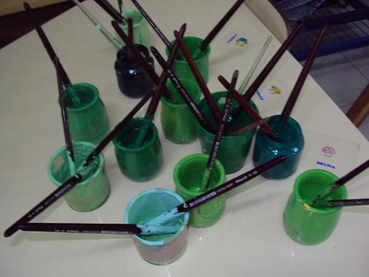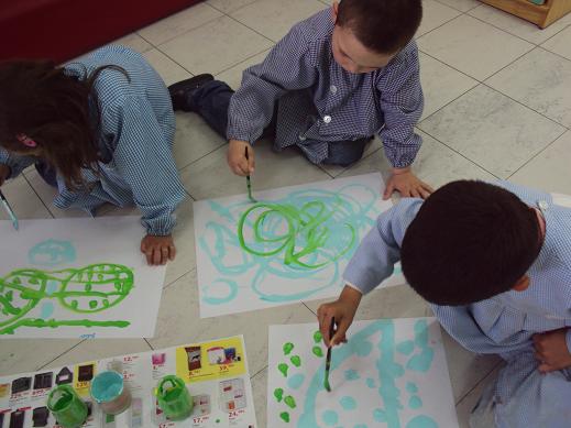 Hoje decidimos dançar de uma forma diferente. Em grupo escolhemos uma cor para a Primavera e combinámos que seria o verde. A música que utilizámos para a dança foi "Sons da natureza". Em pequenos grupos e em silêncio deixámos os pincéis dançarem livremente consoante o que cada um sentia. Foi uma boa experiência de dança, embora diferente do habitual.