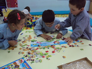 Hoje o dia nem correu muito bem! Por vezes é assim...como é normal andamos prioritariamente de volta da prenda da mãe. Combinámos tudo: o quadro, o saco para o pôr lá dentro e o cartão. Concretizar isto tudo é que se torna mais complicado e eu que valorizo algo feito por eles mesmos sinto-me menos bem quando percebo que "eu os estou a apressar". Porque é que terão de fazer duas pinturas para fazer o saco se só lhes apetece fazer uma? Porque é que têm de desenhar outra vez a fotografia da mãe (para o cartão) se já o fizeram para o placard? O André (e o seu grupo) querem é ajuda para o projecto dos insectos e nós (eu e a Sandra) só temos olhos para a prenda da mãe...é nestes "desencontros" que me questiono acerca das prioridades na educação de infância.