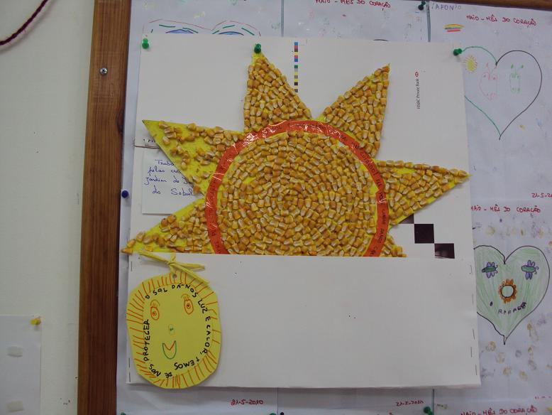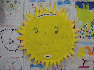 No nosso JI construímos um sol com materiais que reutilizámos (cartão pintado e restos de cartolina). No verso construímos um "Livro do Sol" onde cada JI pode deixar a sua mensagem.