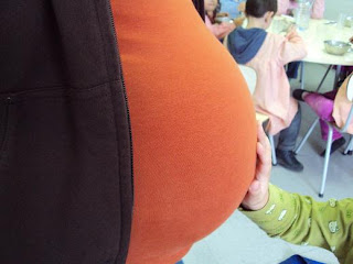 A nossa Sandra (Assistente operacional) vai deixar de estar connosco diariamente nos próximos tempos (embora nos tenha prometido que nos virá visitar com frequência). O motivo é maravilhoso...o João Pedro está quase, quase a nascer. Todos os dias quando cantamos o bom dia já o cumprimentamos também, desde há alguns meses que ele faz parte do nosso dia a dia.