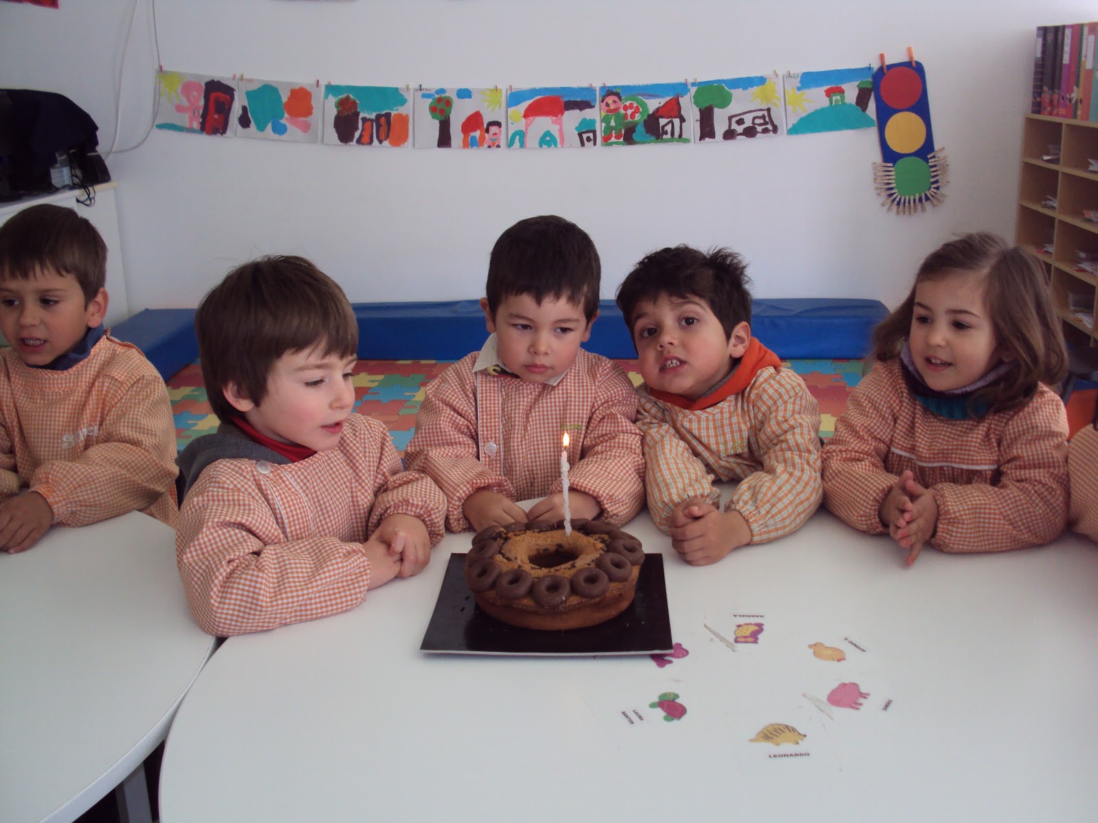 Sexta-feira foi dia de festa na nossa sala. O Miguel Francisco completou 4 anos. Ele é o menino mais velho dos 3 anos porque foi o primeiro a fazer 4 anos...estas coisas nem sempre são fáceis de explicar e compreender pelo restante grupo. Um enorme beijinho de parabéns para o Miguel.