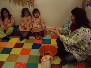 Foi a Antónia (educadora da sala nº 7) que nos veio mostrar como se faz neve. Trouxe uns pózinhos mágicos e foi necessário misturar com água morna. Depois mexemos e fizémos neve quentinha que colocámos no nosso presépio. Esta experiência foi muito engraçada.