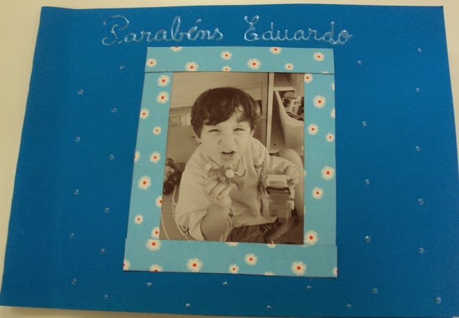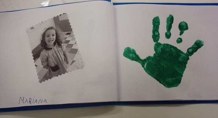 O Eduardo fez 4 anos nas férias de Natal e só hoje é que conseguimos terminar a lembrança de aniversário que oferecemos a cada menino(a) aniversariante. Um livro com uma foto, o nome e a impressão digital de cada amigo da sala para ele se recordar dos amigos do jardim de infância quando for mais crescido