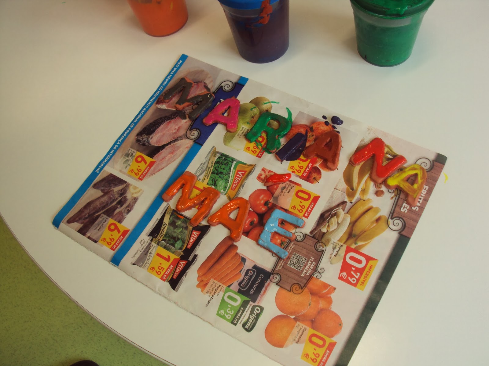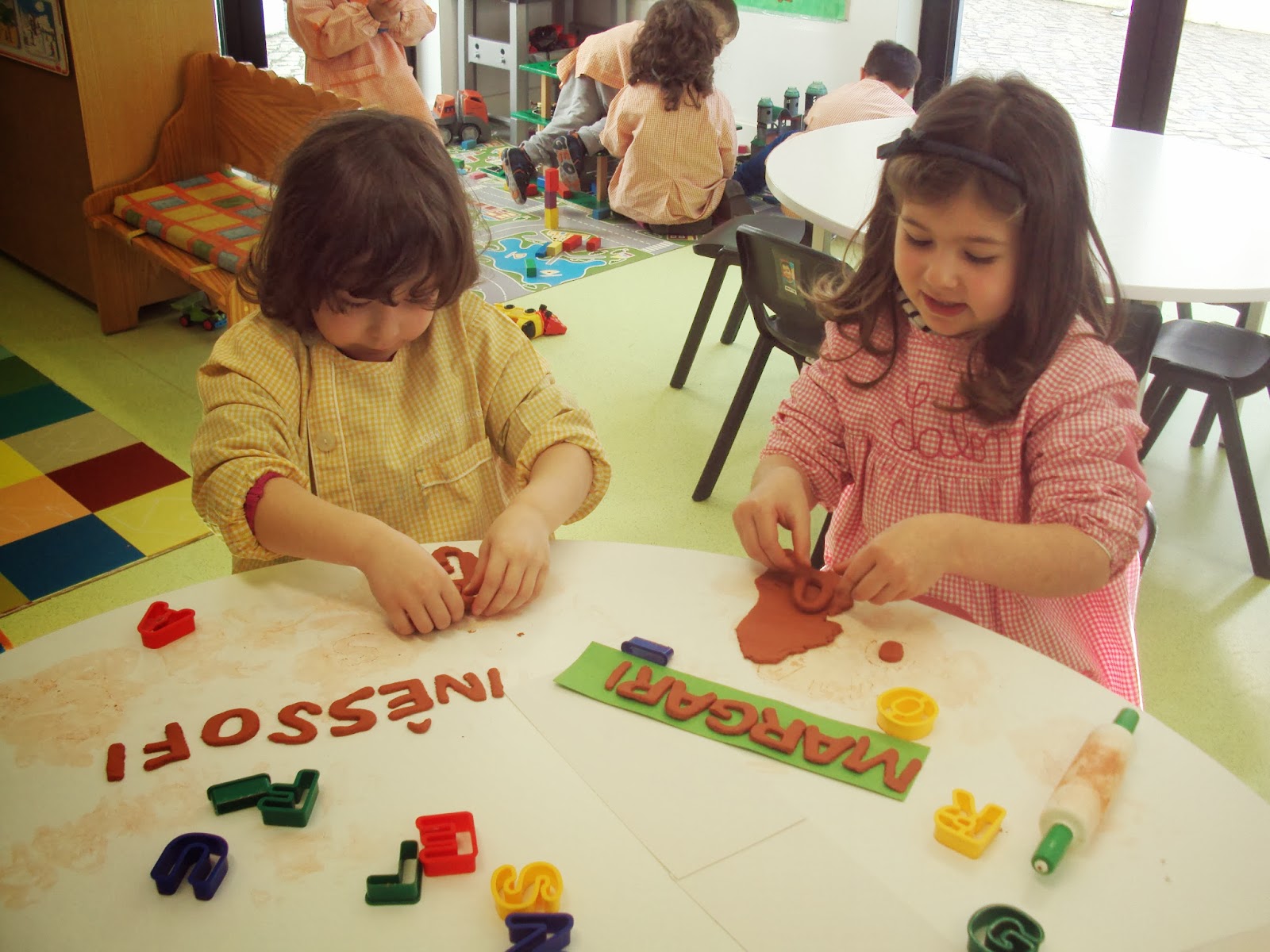 Uma onda de letras invadiu a nossa sala. Feitas com pasta de modelar e pintadas depois de secas, toda a gente quer fazer o seu nome, o dos irmãos, dos pais e escrever outras palavras. A onda já contempla também os números e quando eles querem e gostam não vejo nenhum problema...haja pasta de modelar ou então outros materiais. Entretanto os meninos de 5/6 anos já fazem o nome próprio manuscrito...começa um e contagia os outros e assim, sem se dar por ela letras e números vão-nos sendo familiares