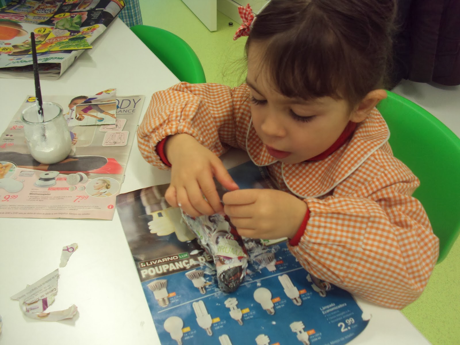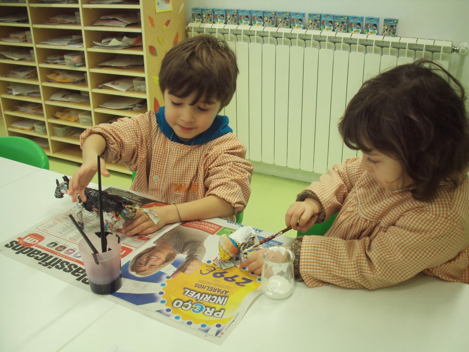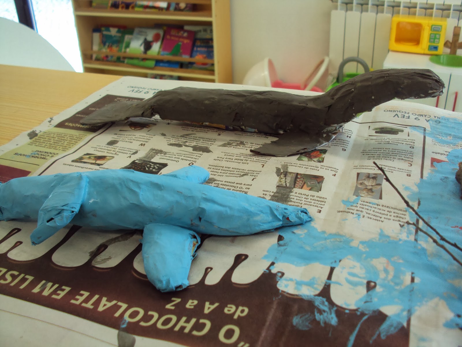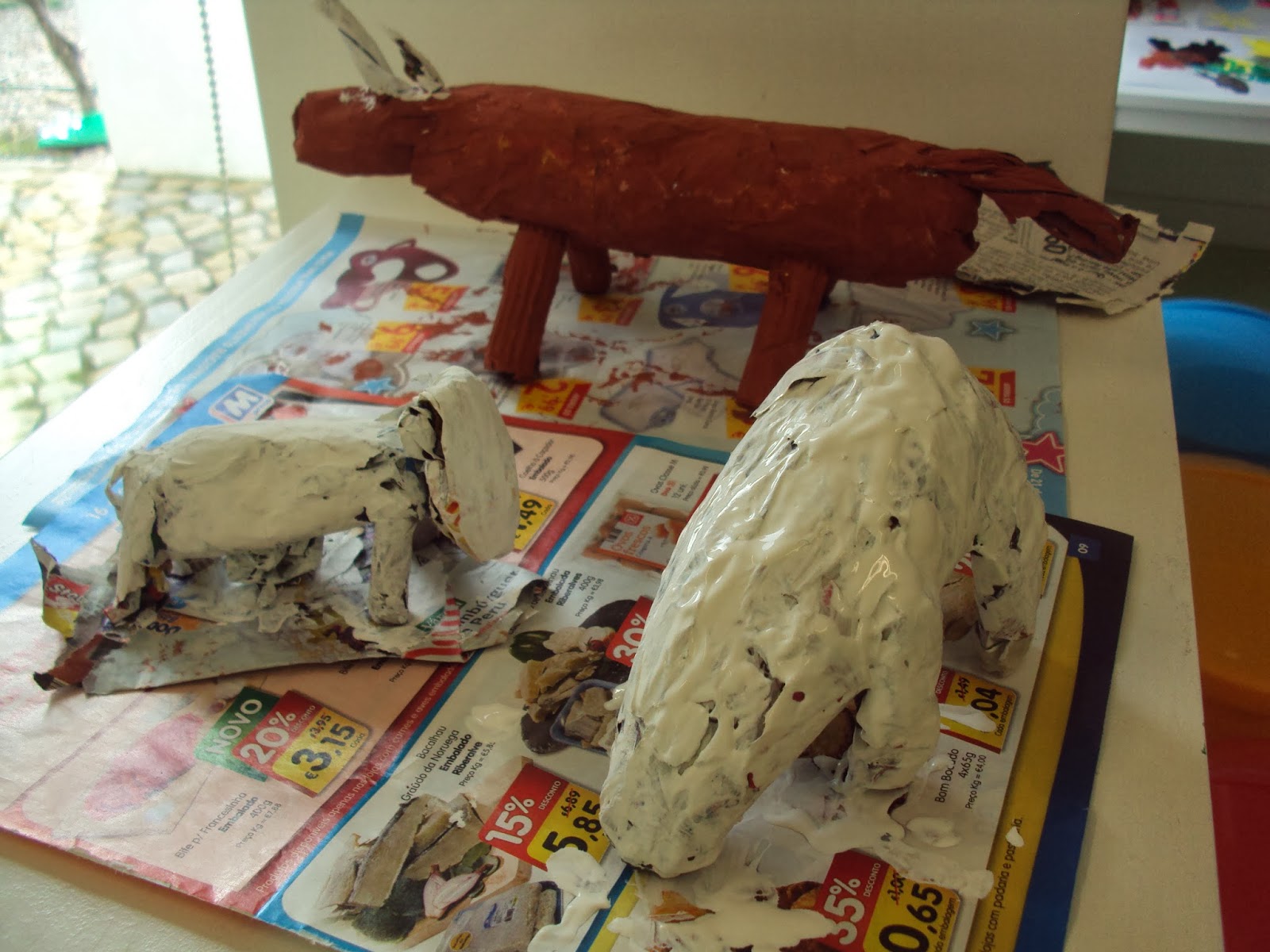 Está a "nascer" um mini jardim zoológico na nossa sala. A ideia do Miguel F. teve muito sucesso e o entusiasmo é grande. A partir de uma foto do animal escolhido e com papel de jornal e cola estão a nascer das nossas mãos pequenas obras de arte. A pouco e pouco e em pequeno grupo lá vamos concretizando as nossas ideias.