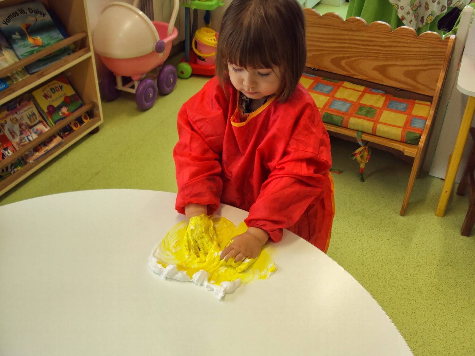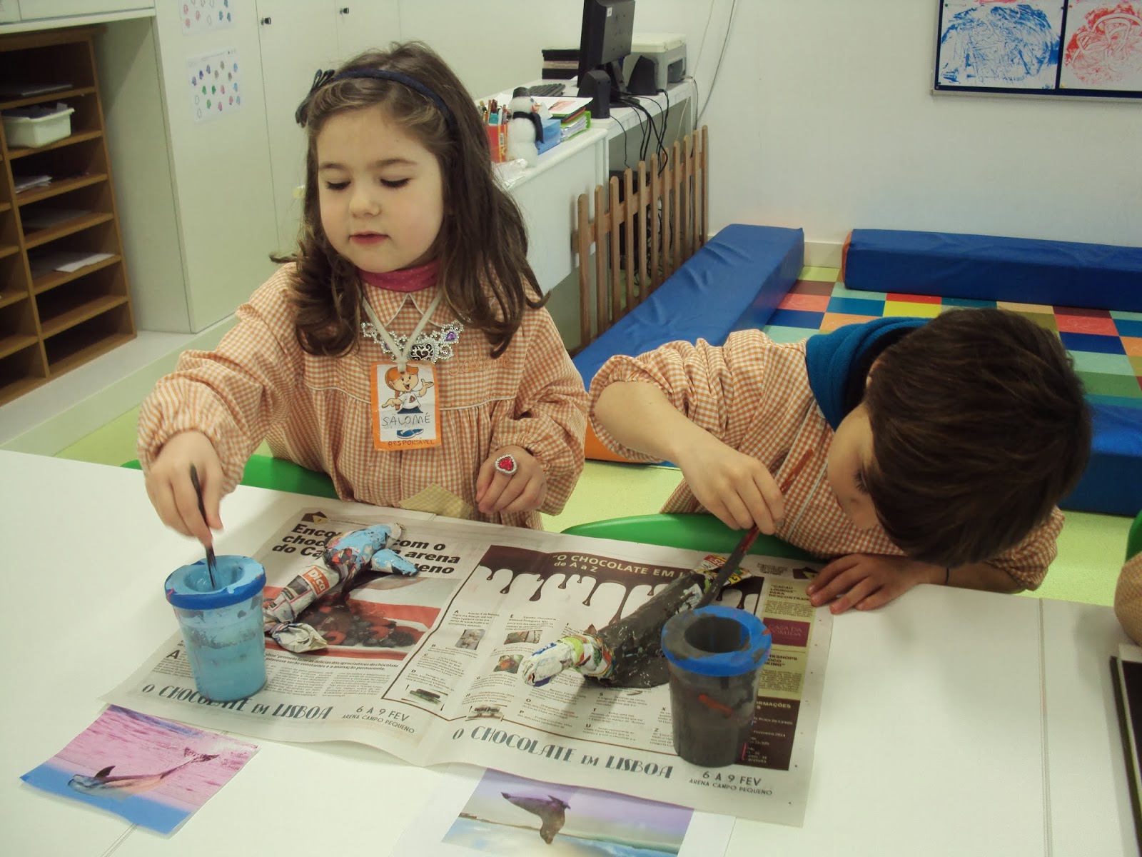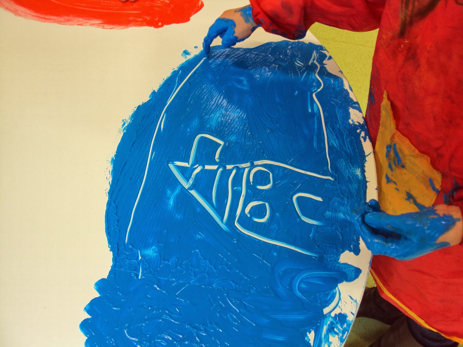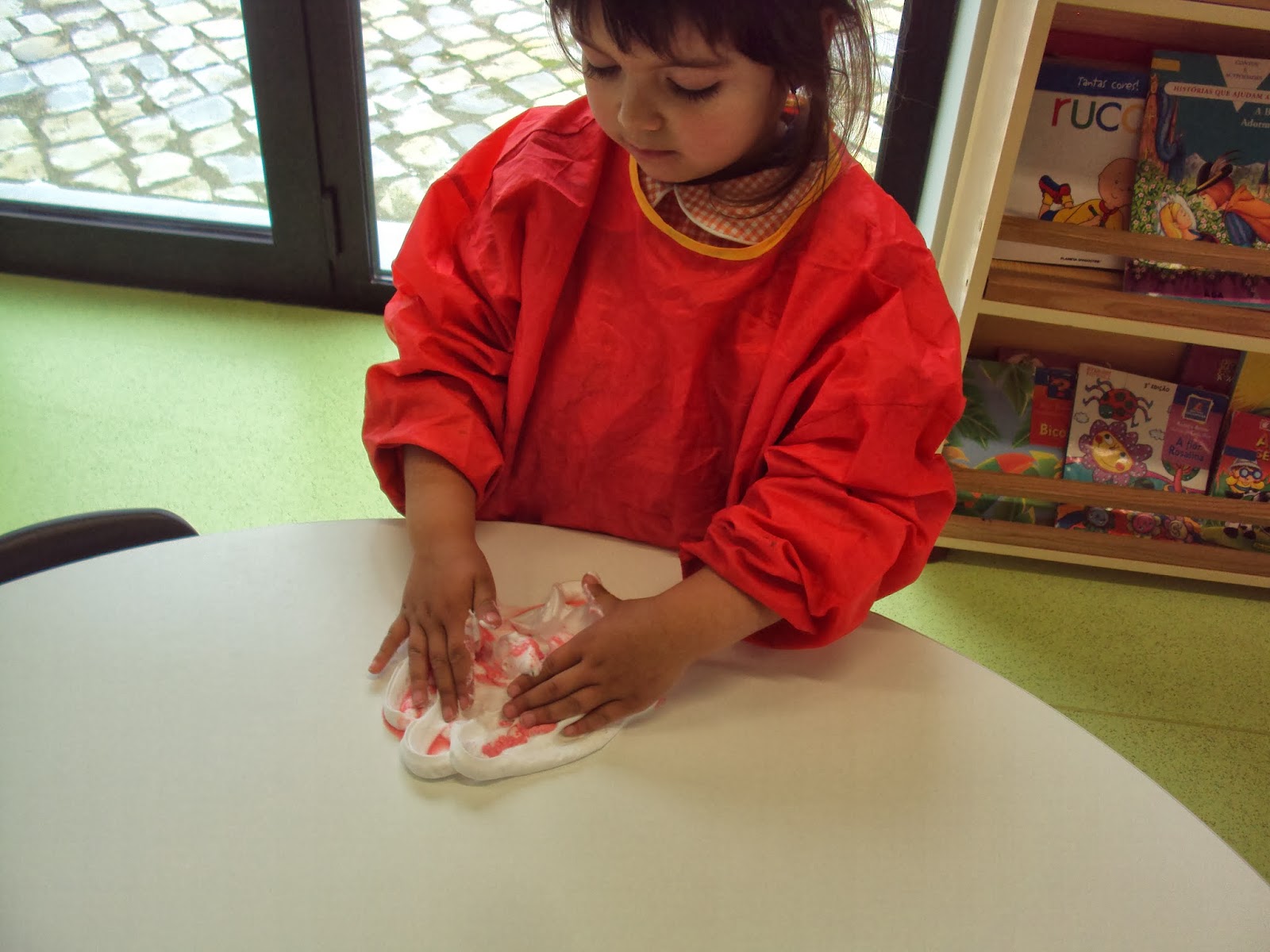 Como experimentar diferentes materiais é algo que muito nos interessa, esta semana fizemos digitinta com espuma de barbear e tinta. Para uns foi muito agradável mexer na mistura, para outros a "apreensão" inicial depressa se transformou em prazer.