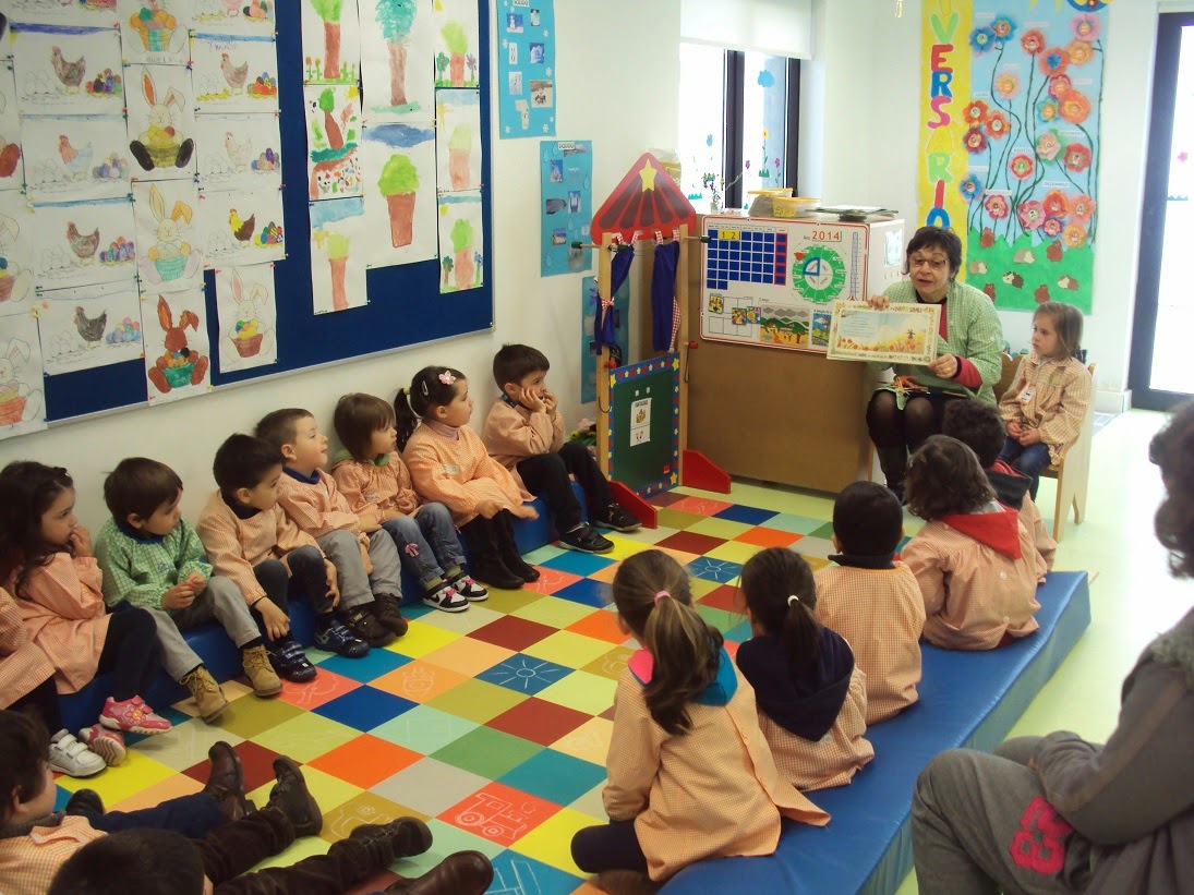 Os livros são uma presença diária na nossa sala. Todos os dias ouvimos histórias, contamos histórias uns aos outros e aos bébés da casinha Semanalmente vamos à biblioteca escolar entregar e requisitar um livro para nos lerem em casa. Também é frequente trazer-mos para a sala livros da nossa casa para conhecermos as histórias que mais gostamos. Hoje, como era um dia especial, a Prof. Natércia (da nossa biblioteca) veio à nossa sala ler-nos a história do "Espantalho solitário".
