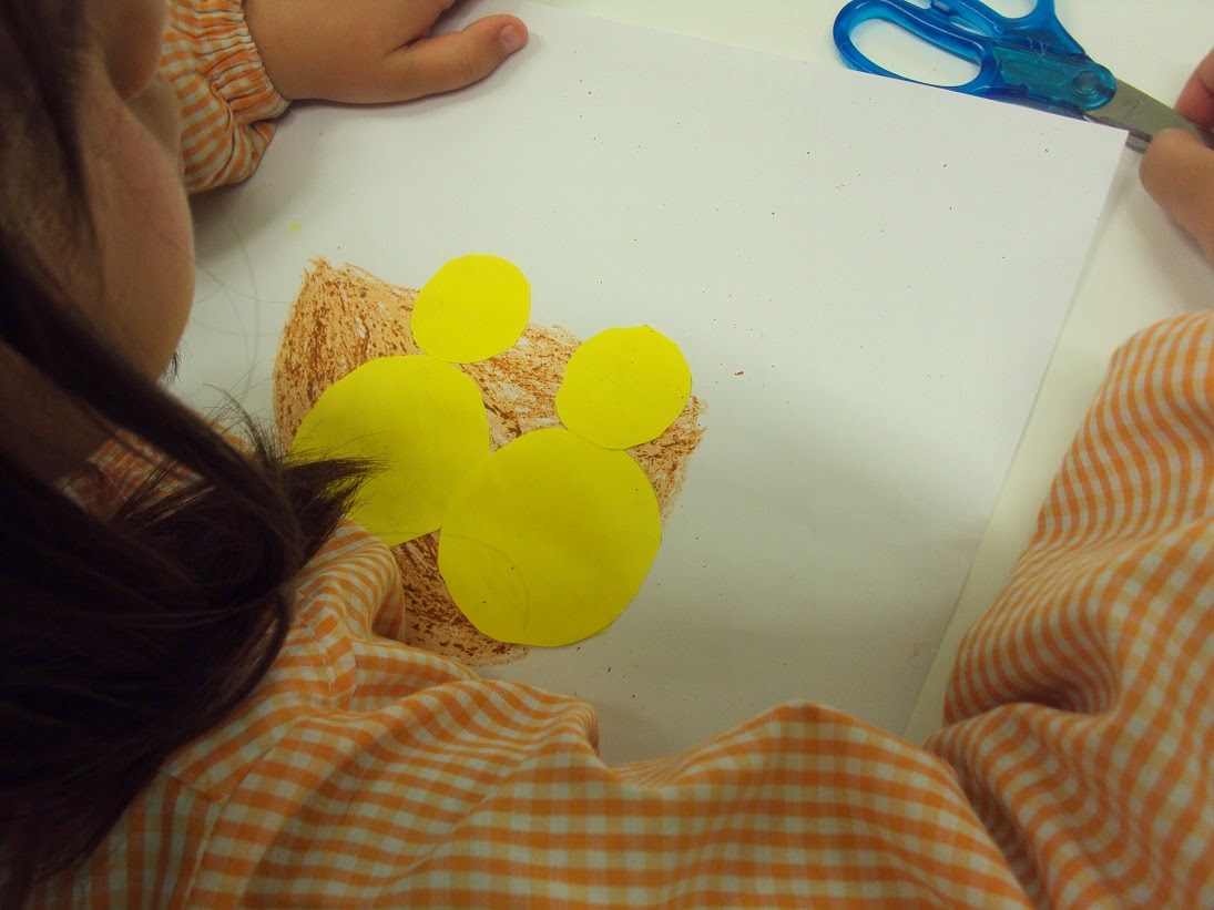Temos andado muito ocupados com vários projetos que andamos a desenvolver. Com um círculo grande e um pequeno fizemos um pinto, com dois círculos grandes e dois pequenos fizemos dois pintos...juntámos penas e palhas  e já está.Também andamos a reutilizar pacotes de leite vazios que estamos a transformar em algo mas só podemos contar mais tarde.