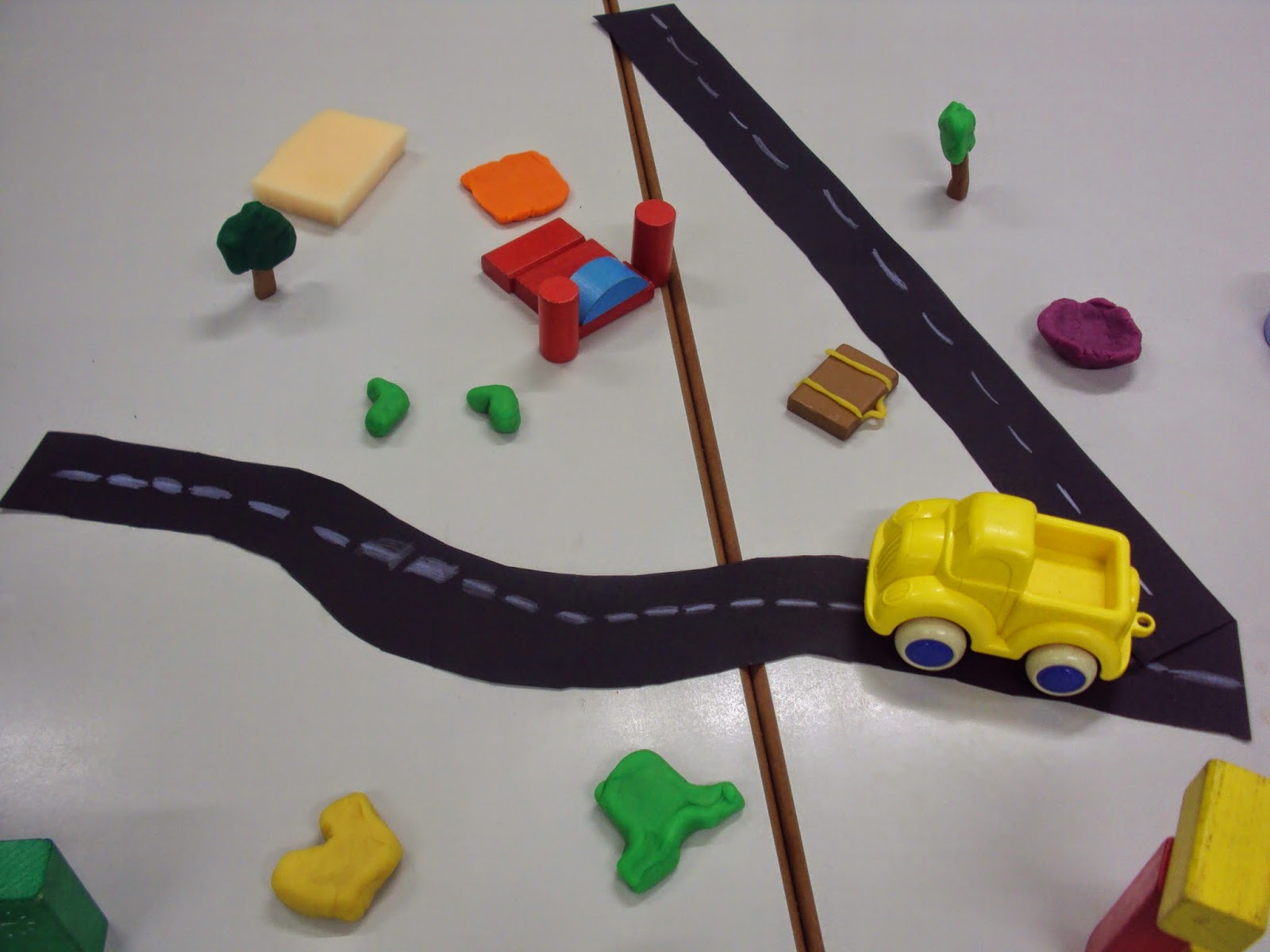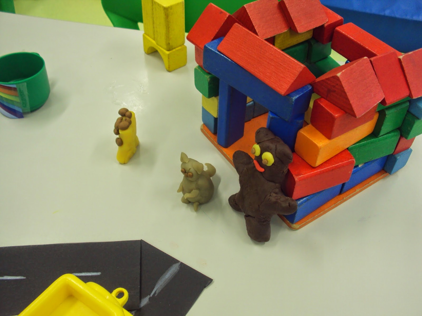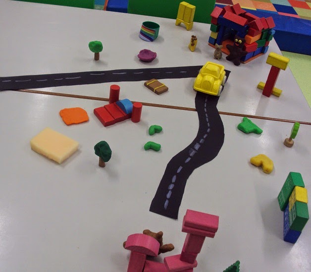 No âmbito do projeto "Em redor das histórias" hoje ouvimos ler a história " Matias vai de viagem". Depois de ouvirmos ler a história conversámos muito sobre o que aconteceu. Também conversámos sobre as coisas que levamos connosco quando vamos de viagem ou quando vamos dormir a casa da avó, dos primos, etc. Por sugestão de alguns meninos estivemos a representar esta história mas desta vez não fizemos um cartaz...fizemos uma maquete com peças de jogos e plasticina.