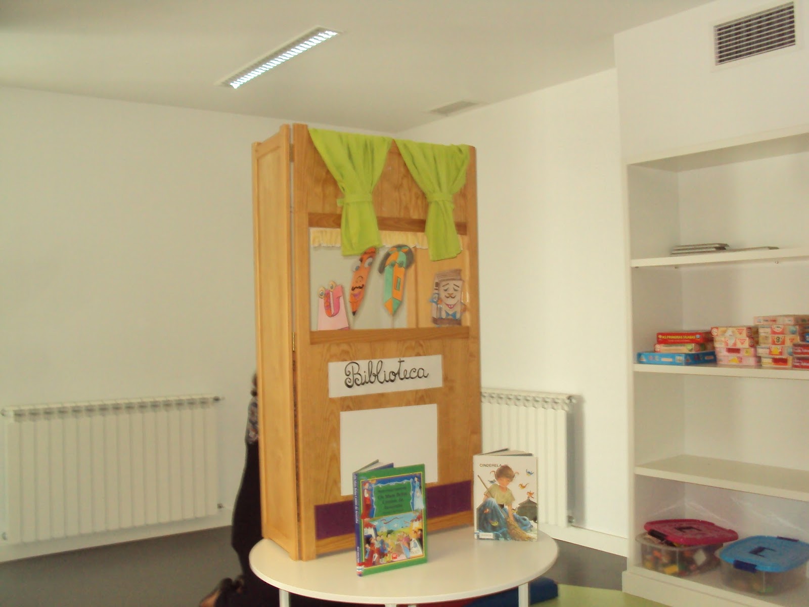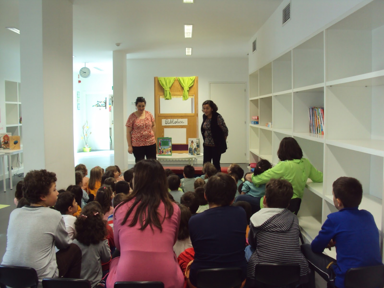 Hoje comemora-se o dia das Bibliotecas escolares. No nosso centro escolar recebemos a visita da Professora Bibliotecária que, em conjunto com a Prof. Raquelina, nos apresentou um teatro de fantoches que falava da importância dos livros e das bibliotecas. No teatro entrava um lápis, uma borracha , uma afiadeira e um livro. Nós assistimos ao teatro com muita atenção e aprendemos que os livros são bons amigos que nos ajudam a aprender.