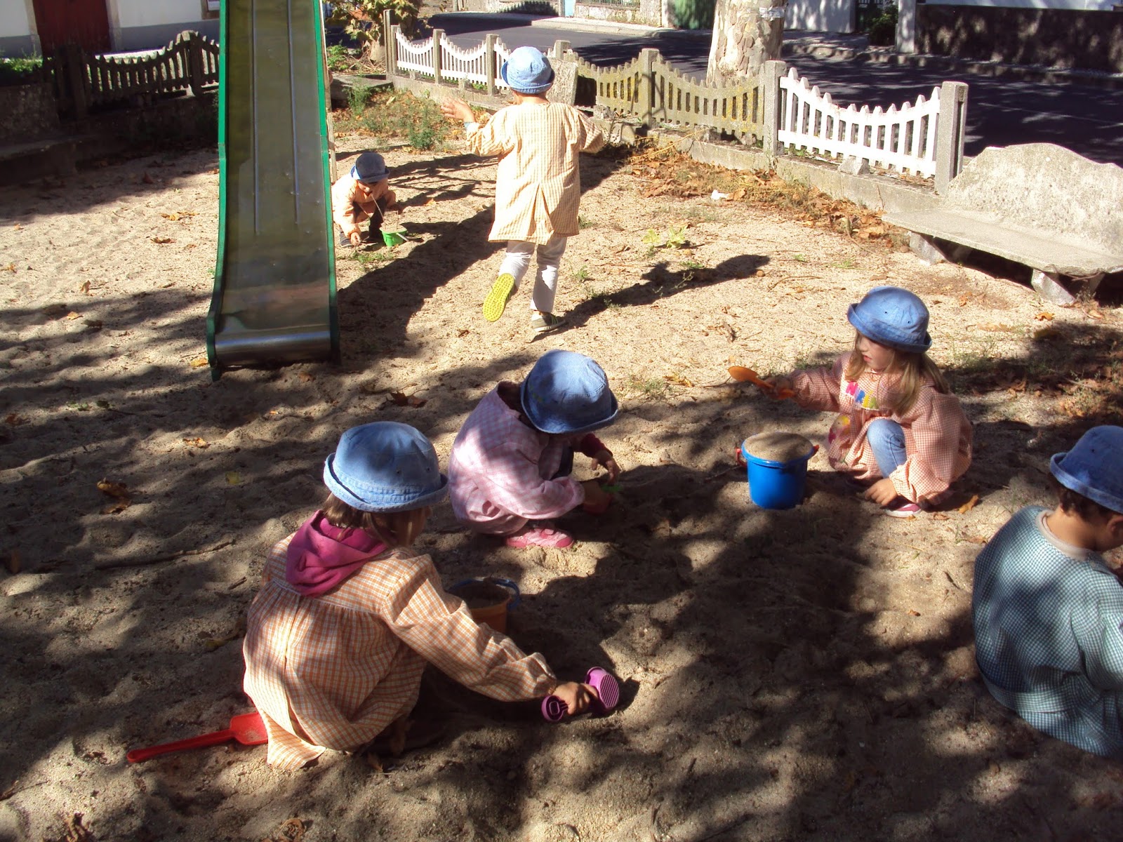 Com dias tão bonitos a vontade de brincar no exterior aumenta. Hoje, de manhã tivemos uma aula de expressão musical como é habitual às quintas feiras. Depois os meninos mais velhos terminaram a "lagarta comilona" enquanto os mais novos estavam no exterior a brincar. De novo todos juntos ouvimos ler a história "Vamos à caça do urso" mas desta vez foi ao ar livre. À tarde fomos mesmo à caça do urso...mas não o encontrámos. Decerto já estava a dormir na sua caverna. Encontrámos outras coisas e foi mesmo divertido. Só é pena as pessoas responsáveis não cuidarem dos espaços públicos para as crianças como elas merecem, temos de ser nós a lembrar-lhes disso...apesar de tudo foi bem divertido!