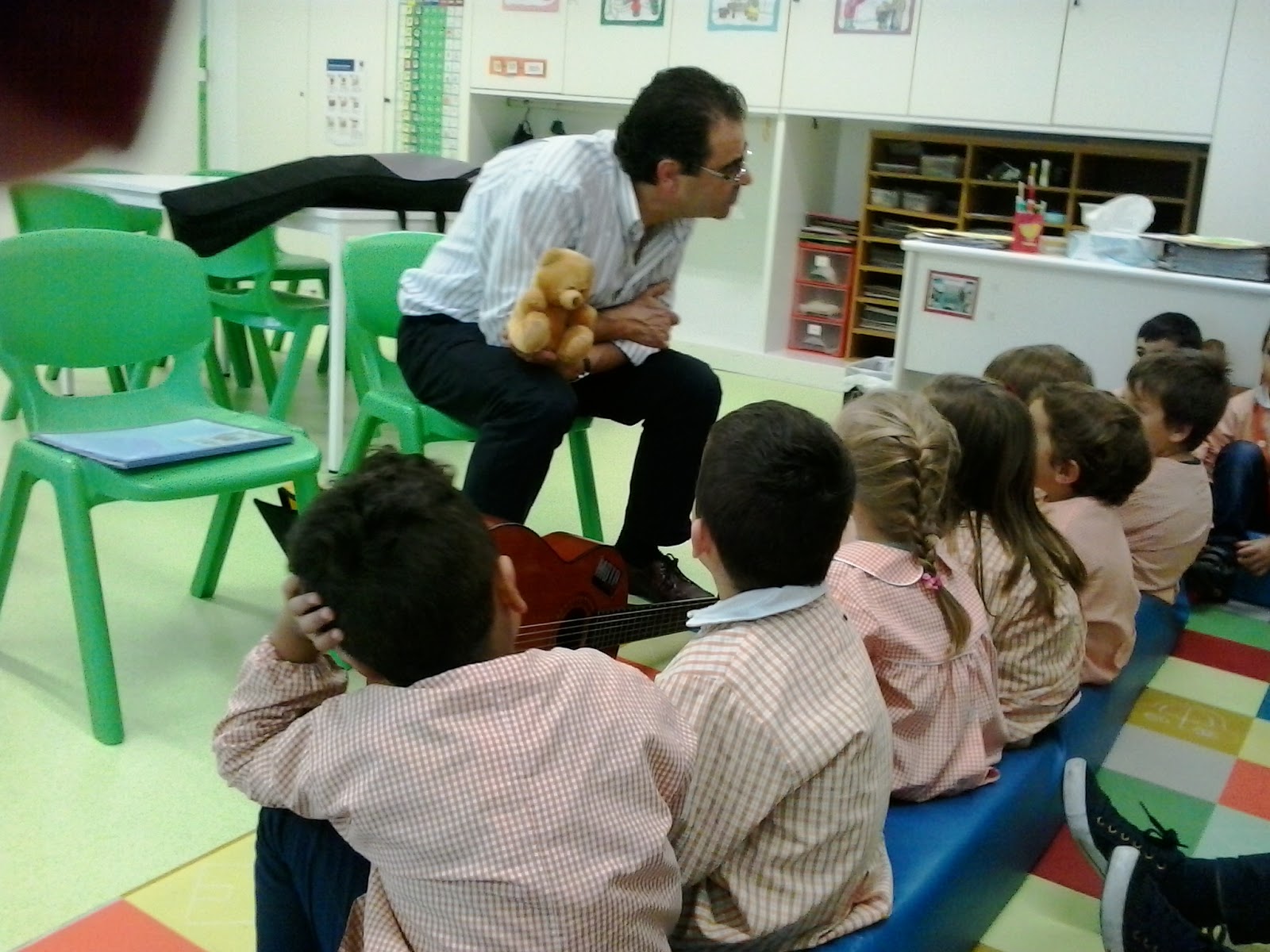 Hoje recebemos na nossa sala uma visita muito divertida que nos veio falar "a cantar" da importância de uma alimentação saudável aliada a uma boa higiene. Em articulação com o PES (Programa de Educação para a Saúde) do nosso agrupamento, recebemos a visita do Sr. Enfermeiro Eduardo. De uma forma divertida e criativa veio conversar connosco sobre a alimentação saudável e a importância da higiene das mãos antes das refeições e da higiene oral após as refeições. Conhecemos algumas personagens como o "Manuel pingo de mel" e uma avestruz dorminhoca. Cantámos e ouvimos cantar e foi mesmo divertida a forma como a mensagem nos foi passada. A brincar aprendemos coisas muito importantes. Obrigada Enf. Eduardo!
