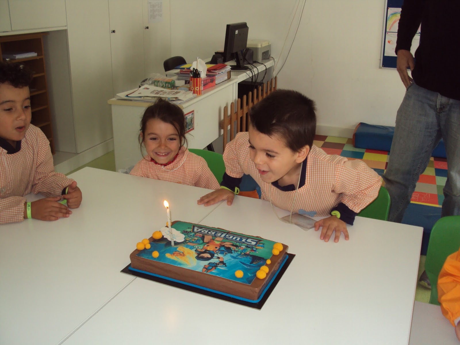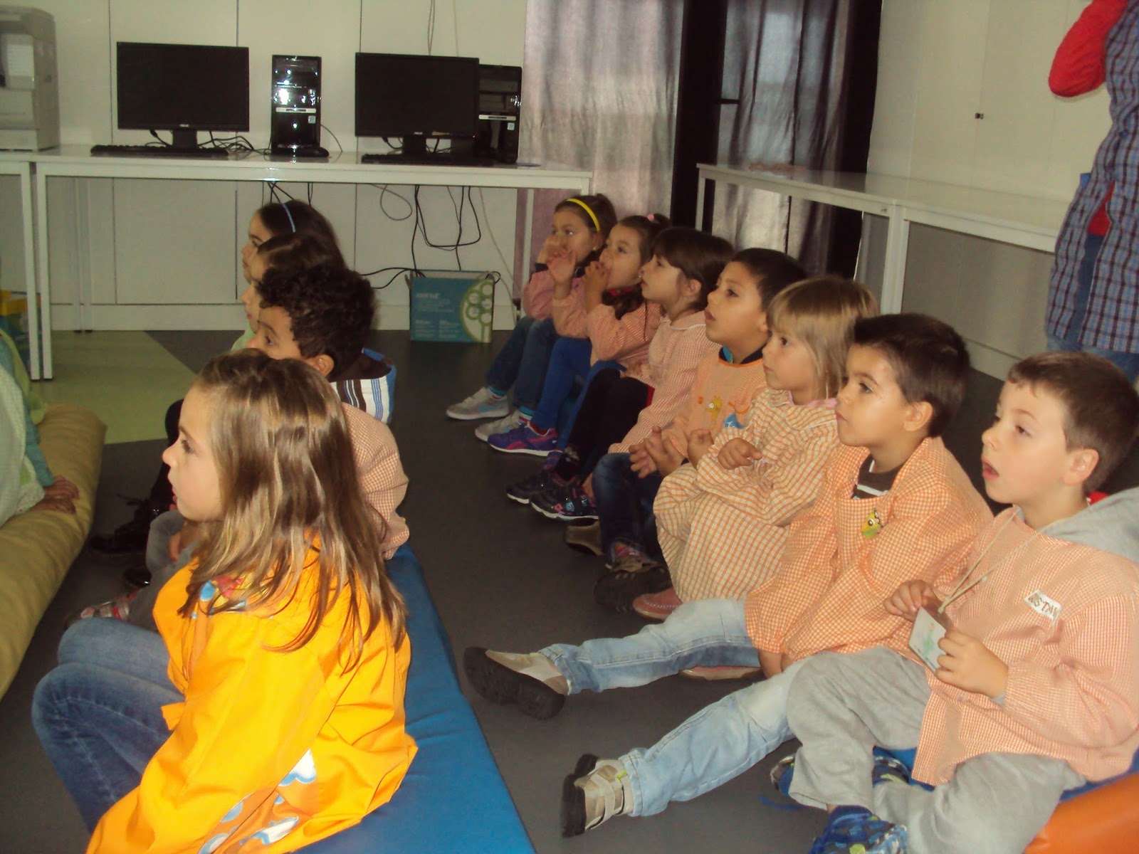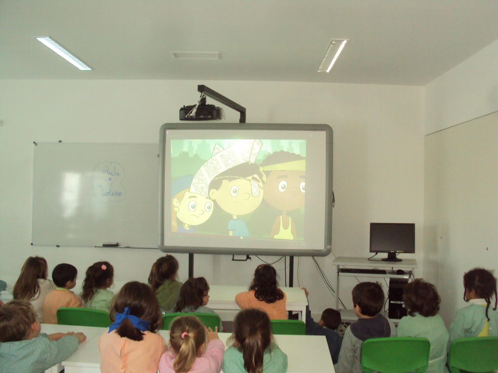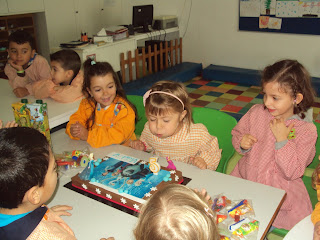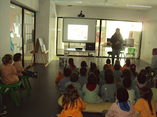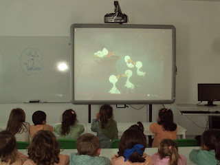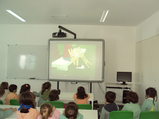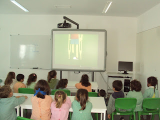 Tal como tínhamos planeado hoje fomos ver, no quadro interativo, duas histórias e um filme sobre as pessoas com deficiência. Primeiro vimos atentamente a história da "Árvore de natal " adaptada com os símbolos do SPC e ficámos a saber que há pessoas que comunicam através destes símbolos. Depois vimos o filme do "Patinho feio" que nos faz pensar sobre a diferença e a aceitação dessa realidade. Ainda vimos uma apresentação sobre "Brincadeiras de criança". A nossa M. que é muito curiosa quis experimentar como é ser cega e até gostou da experiência...porque foi de faz de conta e a B. guiou-a.