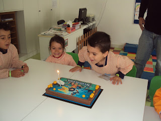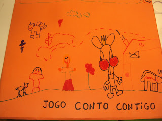 Hoje o nosso Martim mais velho (sim, porque o nosso Martim mais novo tem 3 anos) completou 5 anos. Teve a grande surpresa de ter o Pai e a mãe juntos a cantar-lhe os parabéns connosco. Para oferecer ao Martim fizemos mais um jogo a que chamámos "Conto contigo". Para esta família vão os nossos parabéns!