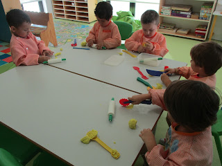 A adaptação correu muito bem. As regras e rotinas vão sendo estabelecidas com calma e depois de negociadas com todo o grupo. Os espaços e os materiais vão sendo descobertos a pouco e pouco. Hoje conhecemos o mano do Tiago que nasceu há oito dias. Experimentámos modelar com plasticina.